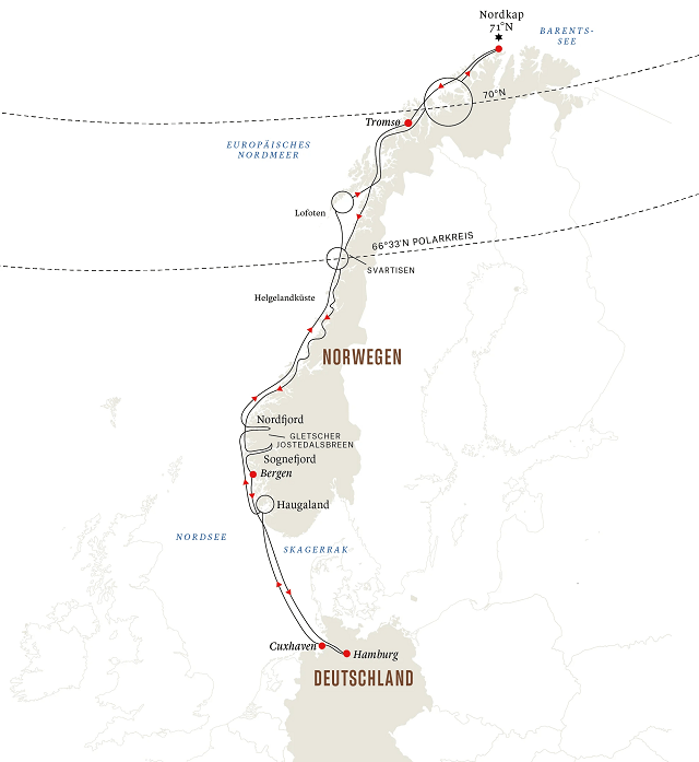 Unternehmen Sie mit uns ab Hamburg eine Reise entlang der norwegischen